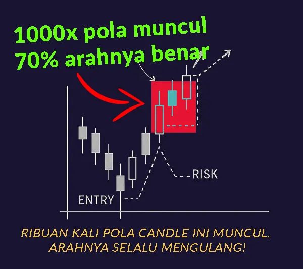 Dari ribuan kali ‘pola candle’ ini muncul di market XAUUSD dan forex, arahnya 70% selalu benar.